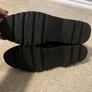 Item is in very good pre-owned condition; soles are clean; previous owner inserted a heel pad in the right shoe.