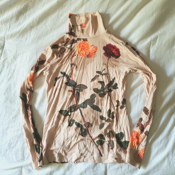 dries van noten SAMPLE FW19 floral shadow beige turtleneck. orange and red rose flower pattern. size extra small, could fit small as well. worn and washed but amazing condition