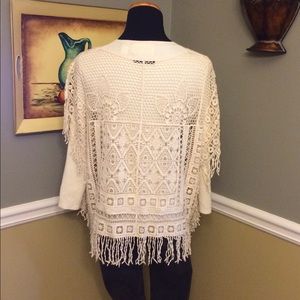Full crochet fringe pull over. The pic is shown with a cream colored sweater underneath because you must wear something under it - completely see through! Can also be used as a swim wear cover! ❌ NO TRADES or HOLDS! Thanks!