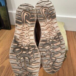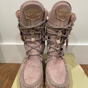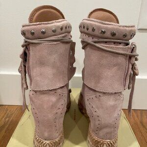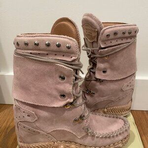 **SOLD**El Vaquero Light Pink Nikila Suede boots EU36 (Will fit US size 6-6.5). In excellent condition. Pocket on each side, lace front. Super soft suede. Hidden wedge heel. Minor signs of wear/dirt on top of boot and toe but not noticeable when wearing (see pictures). Super cute style. Worn 2x. Will be the perfect summer concert/festival bootie. Smoke free, pet friendly home (pets now allowed near shoes).