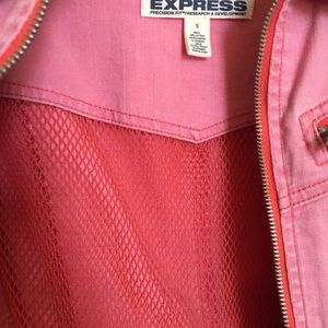 Express pink jean jacket | dope netting inside the jacket (seen in pic) | material: 90% cotton 9% polyester 1% spandex