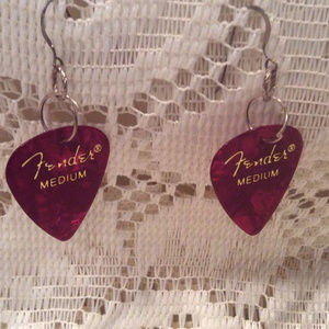 Custom Lot Set of FENDER Guitar Pick Wire EARRINGS & 16" NECKLACE -NICE!