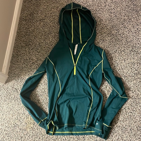 Deep green with neon accents, hooded quarter zip. Worn only once or twice