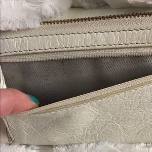 There’s a bump scuff on the front and may come off, haven’t tried, also some spots on the inner part of the coin area pictures to show this. I never used the coin zippered area so I didn’t notice it until I took pictures for Poshmark. Other than that, it’s pristine and genuine leather.