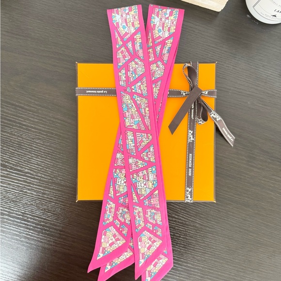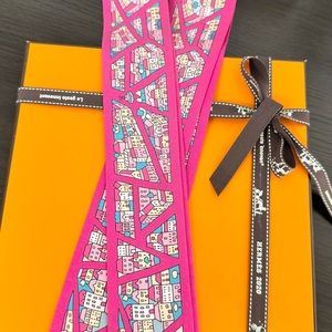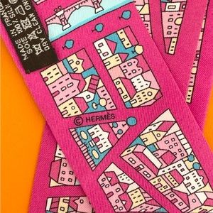 ❌SOLD❌HERMES Rive Droite Rive Gauche Silk Twilly Bandeau Set - Rose