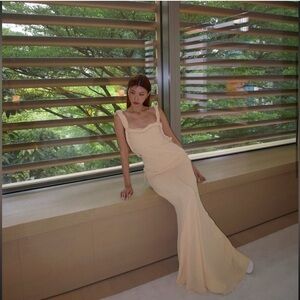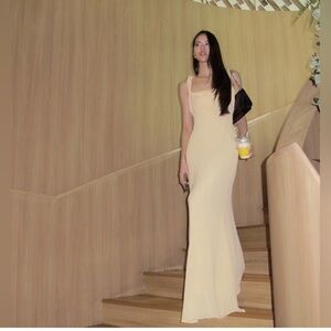 ❌SOLD❌H&M Studio Collection TWIST-DETAIL CRINKLED DRESS in Pastel Yellow