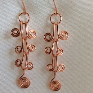 These unique copper earrings have a distinctive Egyptian flare, (at least I think so). They are just under 2" long. I can make these in any wire or maybe a wire combination.