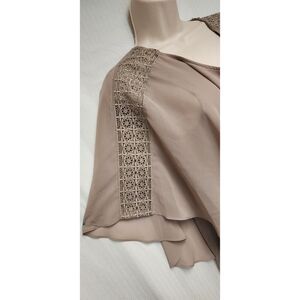 AGB Batwing Short Sleeve Tan Chiffon Blouse Size XL. This blouse is in excellent pre-owned condition. No stains, rips, or any signs of wearing to the fabric. Please read the measurements below to avoid a high volume of returns before placing your order. Thank you for your business and happy shopping!