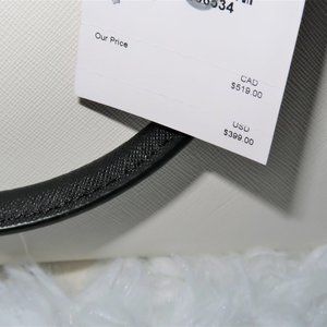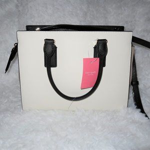 NWT/Authentic Kate Spade Cameron Satchel in White, Black and Beige, features Combination of Gold Colored Chain and Leather Handles and Gold Colored Hardware.