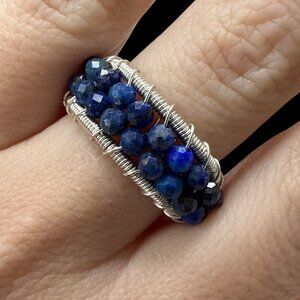 **SOLD**Lapis Lazuli Blue faceted beaded ring gemstone jewelry silver wire