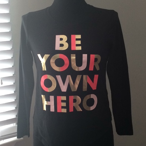 Long sleeved crew neck logo tee; “BE YOUR OWN HERO”. Tee is black with pink and gold lettering. In EUC. Bundle to save!