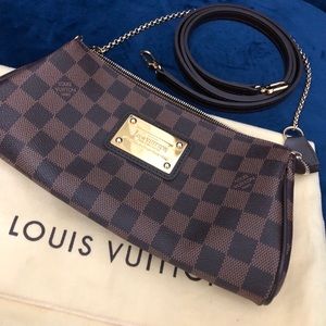 Ultra classic Louis Vuitton Eva clutch in damier. Comes with box, dust bag, 1 chain strap, 1 cross body strap. Beautifully made and gently used. Only wore a handful of times. Faint scratches on hardware. Great condition!