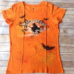 LuLaRoe women's OS one size dark blue witches on brooms leggings with orange Halloween witch T-shirt (not LuLaRoe). Leggings fit size 0-12. Shirt is a medium and 100% cotton. Super cute Halloween outfit! Great for trick or treating with the kids!