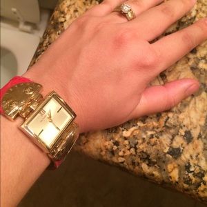 🌟SOLD🌟MK2368 Gold Magenta Leather Band Watch