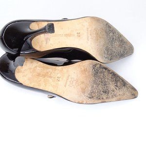 $745 Manolo Blahnik Black Patent Leather Pointed Toe Pumps Mary Jane Size 37