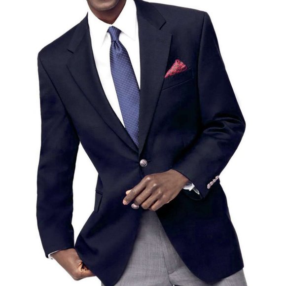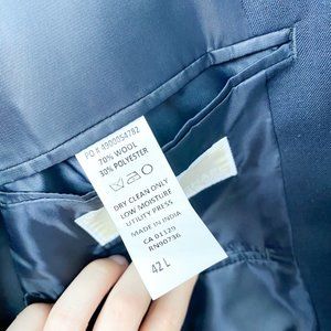 Michael Kors technical wool blend navy blue two-button career, business, workwear blazer men's sports coat