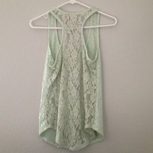Mint green tank top. Sequence on front, lace in back. NWOT. Size small