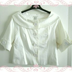 This lovely NEVER worn NEW White Boat Cut Dressy Jacket. This jacket is a MEDIUM in size. Not sure if that's a six i just chose a number.