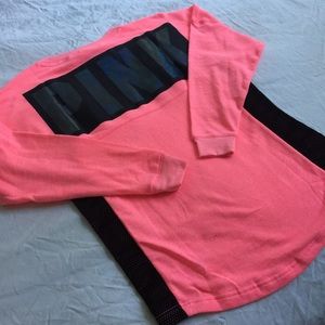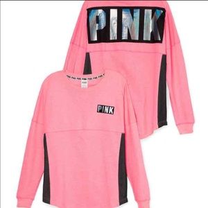 $40 Mercarri: Pink metallic / holographic varsity crew.