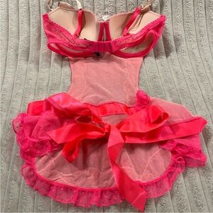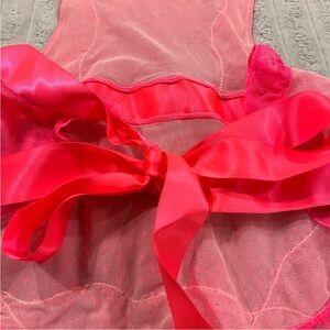 Chic pink lace chemise with delicate detailing. Features a flattering fit and elegant design.