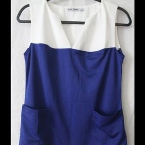 New never worn, came without tags. 100% Polyester with (scuba like) blend material. Sleeveless, V-neck. Fits like size 4-6. **BOGO Combine this piece with more items in this closet to get free shipping or a discount. Listing ends July 1st. Make your offer / bundle today