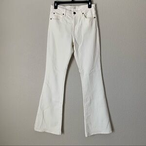 Bring a trendy kick to everyday outfits with slimmed-down flare jeans crafted in Los Angeles from premium Italian denim. Small flaw that may be removable as pictured but otherwise in new without tags condition!