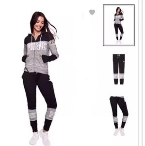 NWT VS Pink Set. Medium perfect zip top and large skinny fit jogger! Bought but the pants are just a little to big. My loss is your gain! This set is perfect for the upcoming fall and winter season! Not looking to make money, just get back what I spent on it (minus the 20% posh takes) so price is firm!