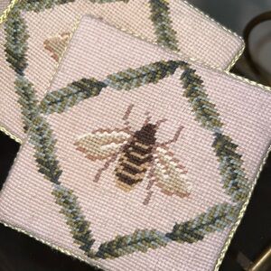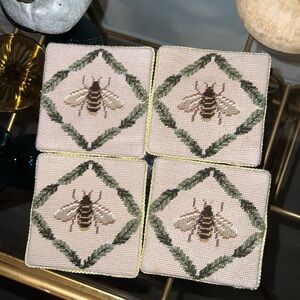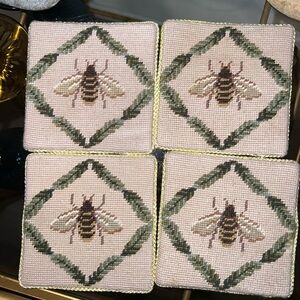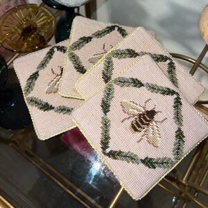 **SOLD****Needlepoint Bee Embroidered Coasters Set of 4