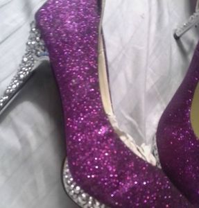 Beautiful Purple and Sliver Rhinestone Shoes New A Night on the Town!! Nwot. A strap goes around your Ankle, or take it off and wear it like a Pump... they Would look Nice with that Sexy Outfit!