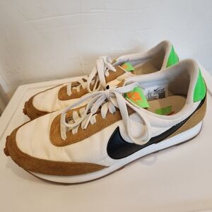 Great pair of Nike Women's Daybreak Casual Sneakers Tan and Green. These shoes are in good, used condition size 9. These shoes are very comfortable. The creases on the toe are the only real signs of wear.