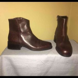 Dark brown Nine West Booties that you can dress up or down! PreLOVED with a little visible wear on the insides but still have a lot of life left as the outsides look great!