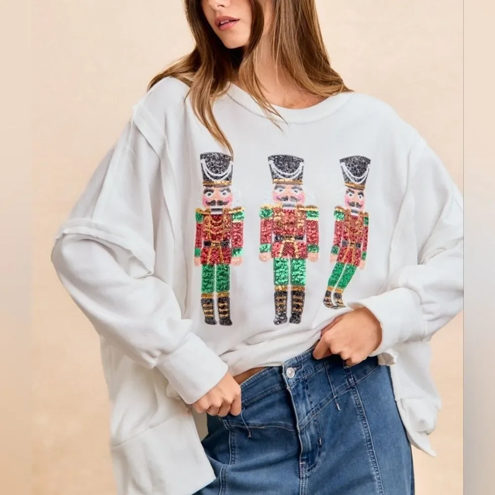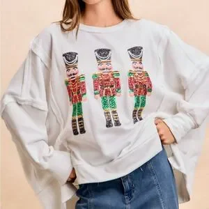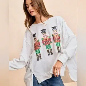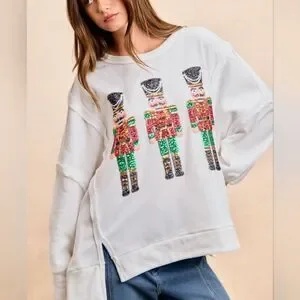 Oversized Nutcracker Graphic Sweatshirt Cream Christmas Holiday Pullover