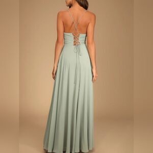 This elegant sage green maxi dress features a stylish crisscross back design, perfect for any occasion. The soft, flowing fabric ensures comfort and grace.