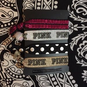 These Victoria Secret PINK Yoga Sports Bras are perfect if you want a little more support than a normal sports bra! And the 4 PINK hair ties are cute and fashionable (never used). I have one sports bra with pink and black stripes and another with pink and organize hearts. Both are are size Small (roughly a size A-C - I'm a 32C and it fits me fine). The whole bundle is $25, or you can get 1 bra for $12 and the hair ties for $5. Willing to negotiate.