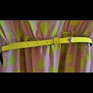 Mid thigh light weight sleeveless dress with shiny bright green belt. Worn once. No stains or tears.