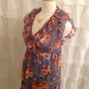 Blue knee length floral dress. Great for spring and summer. Never worn. Tags have been removed though.