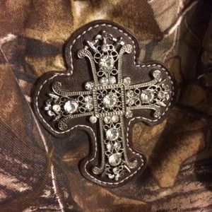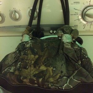 Real tree camo purse/ used about 3 times / very good condition / very spacey / bedazzled cross