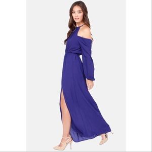 ❌SOLD❌ Lovely Royal Blue off the Shoulder Long Sleeved Maxi Dress with a Side Slit for a Stunning Finish. NWOT.