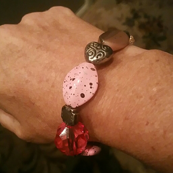 Pink, silver, and black beads on a stretchy twine. Never worn! It was a gift and is perfect to wear during breast cancer awareness month in October. It was to remind me to pray for a friend who went through breast cancer and is over 5 years cancer free! I wasn't able to wear it because I have very tiny wrists and I didn't want to lose it! I hope someone can wear this for themselves or to help someone else!! Xoxo