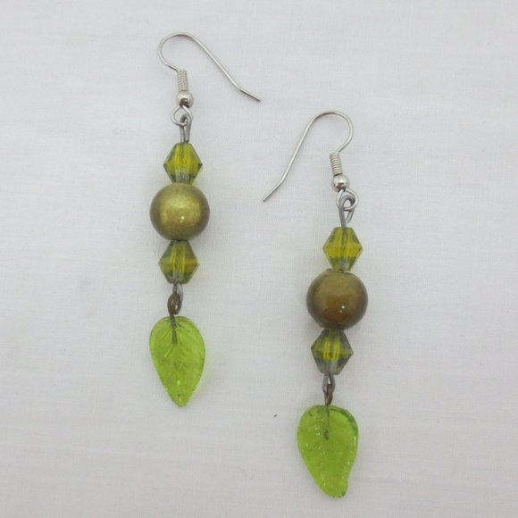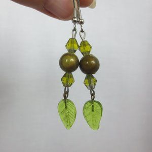 Green glass leaf dangles