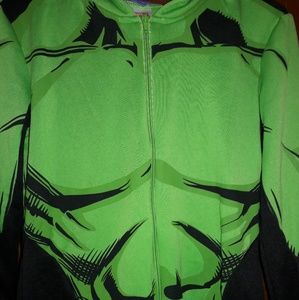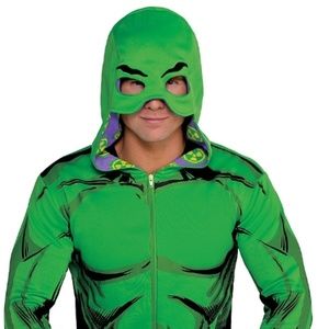 Our Hulk Hoodie packs a punch! This cozy hoodie resembles the Incredible Hulk, complete with muscles printed in black. A built-in eye mask on the hood makes this hoodie extra epic! Our Hulk Hoodie makes a great addition to your Hulk costume or a fun everyday outfit accessory.