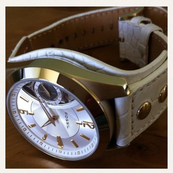 This watch was worn maybe a few times.. The leather is slightly discolored and peeling. A minor scratch on the metal part of the decor. Other than that. Cute "boyfriend" watch!!!