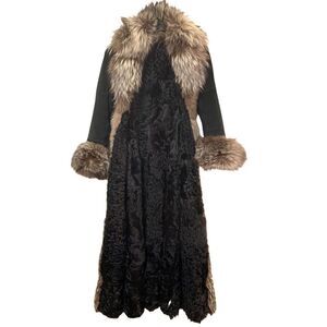 ❤️SOLD❤️ST. JOHN COUTURE Suede Broadtail Persian Lamb/Silver Fox Trim Long Coat
