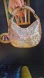 This 2007 YSL Mombasa bag is sending us into a spiral! The Mombasa was first released by Saint Laurent in 2001 under Tom Ford's creative design. It quickly became an "it girl bag" of the early 2000s with this limited edition gold sequin design being photographed on Jessica Simpson. Measuring around 12"W x 9"H x 1"D, it is fully embellished in hand sewn sequins in a spiral pattern and features a deer horn strap accent with gold plating.