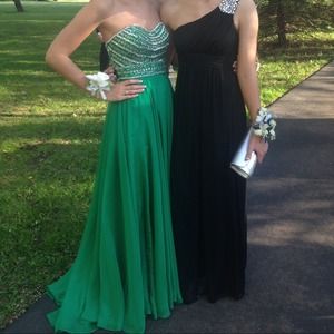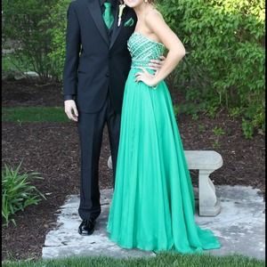 Worn once for my prom this past year! Tons of compliments on the color. Very unique! Silver beading along the top with a sweetheart neckline. I made some alterations. I changed the length. I'm about 5"6 and I wore flats. There's a pretty long train still. I also took the dress to the dry cleaners after the dance because it had some stains and rips. But it's all perfect now! Would love to see another girl get her use out of this dress ππππππ selling through PayPal