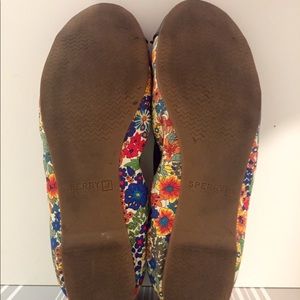 Adorable Sperry Topsider ballerina flats with navy patent toes and trim, cute and colorful navy floral pattern fabric. Worn twice. Wear can be seen on the soles. Size 9