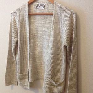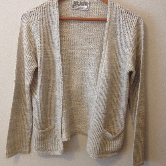 Vintage St John Boucle Wool Cotton Blend Open Front Cardigan