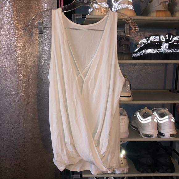 Women’s sleeveless top in the color white. Tags have been removed, but fits like a large. In good condition.