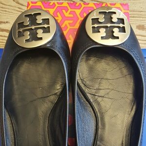 Iconic TB Reva flats! Minor scuffs at base of shoe near toe and heels. Not noticeable when wearing. A few tiny scratches on gold emblem, again not noticeable. True to size. Box included!