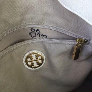 ❌SOLD❌Super pretty Tory Burch handbag! I bought this cute bag on Posh two months ago, gently wore it this summer, and now am ready for a new style. 😊 Fine Basketweave type material with white leather trim and base. Some scratches and scuffs on the hardware on the handles, but overall in really good condition! White leather is clean with a little normal wear from use. Interior pocket is marked with black marker. It came that way to me. Got a lot of compliments on this bag! Cross posted